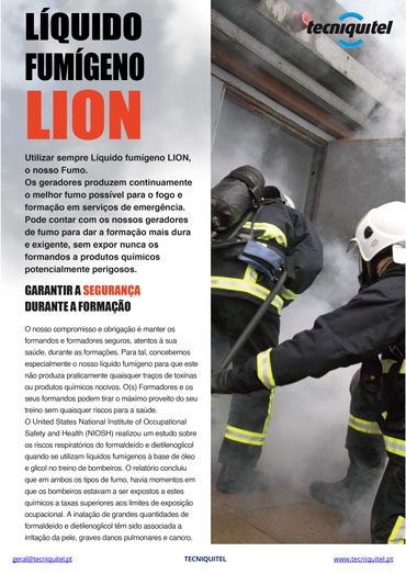 TECNIQUITEL recomenda a utilização de proteção respiratória quando se utilizam geradores de fumo para treino e em condições de fumo intenso.